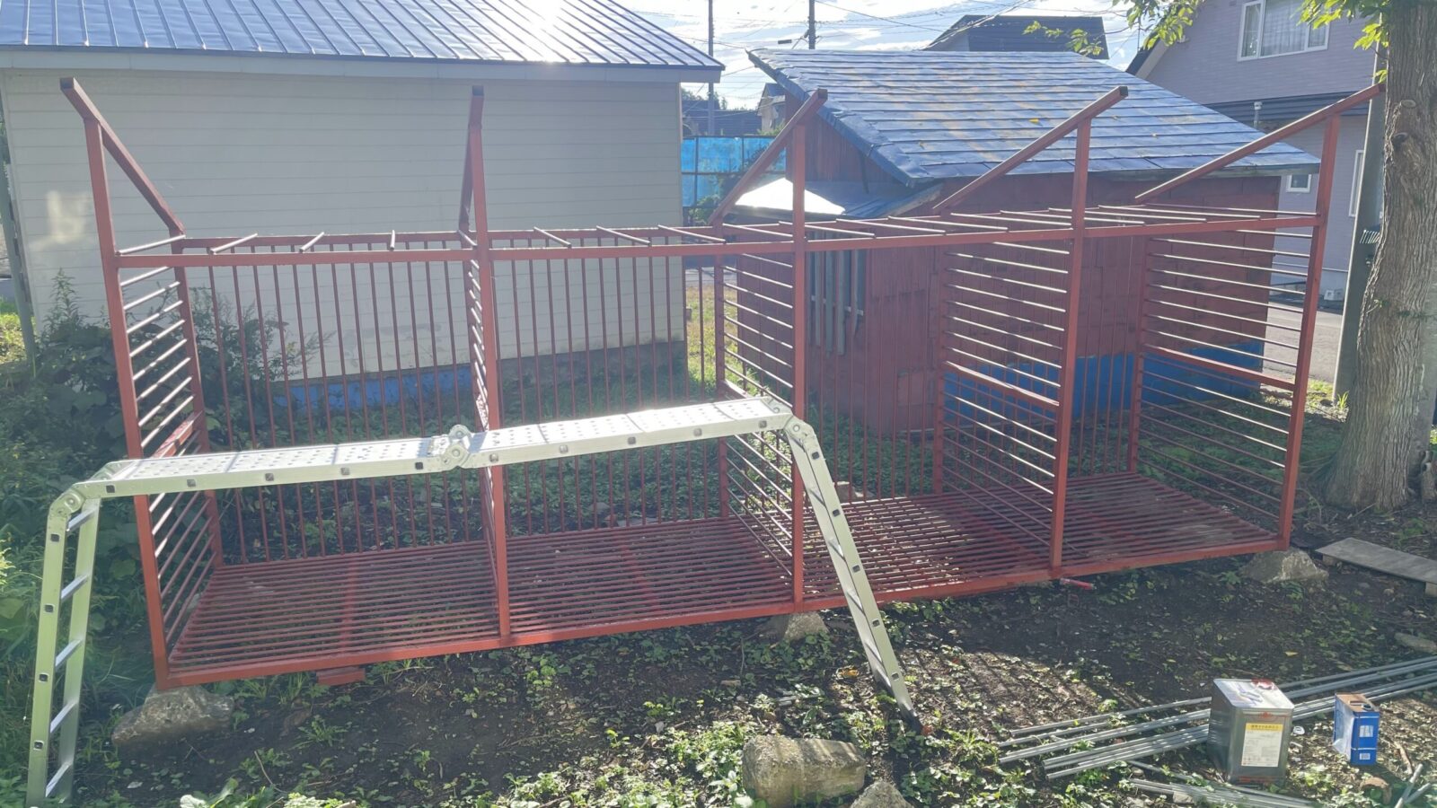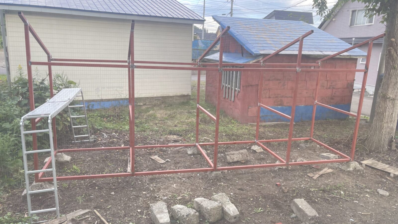 そして、壁の部分には、知人から譲り受けたビニールハウスの細いパイプを切断・溶接して使うことにしました。