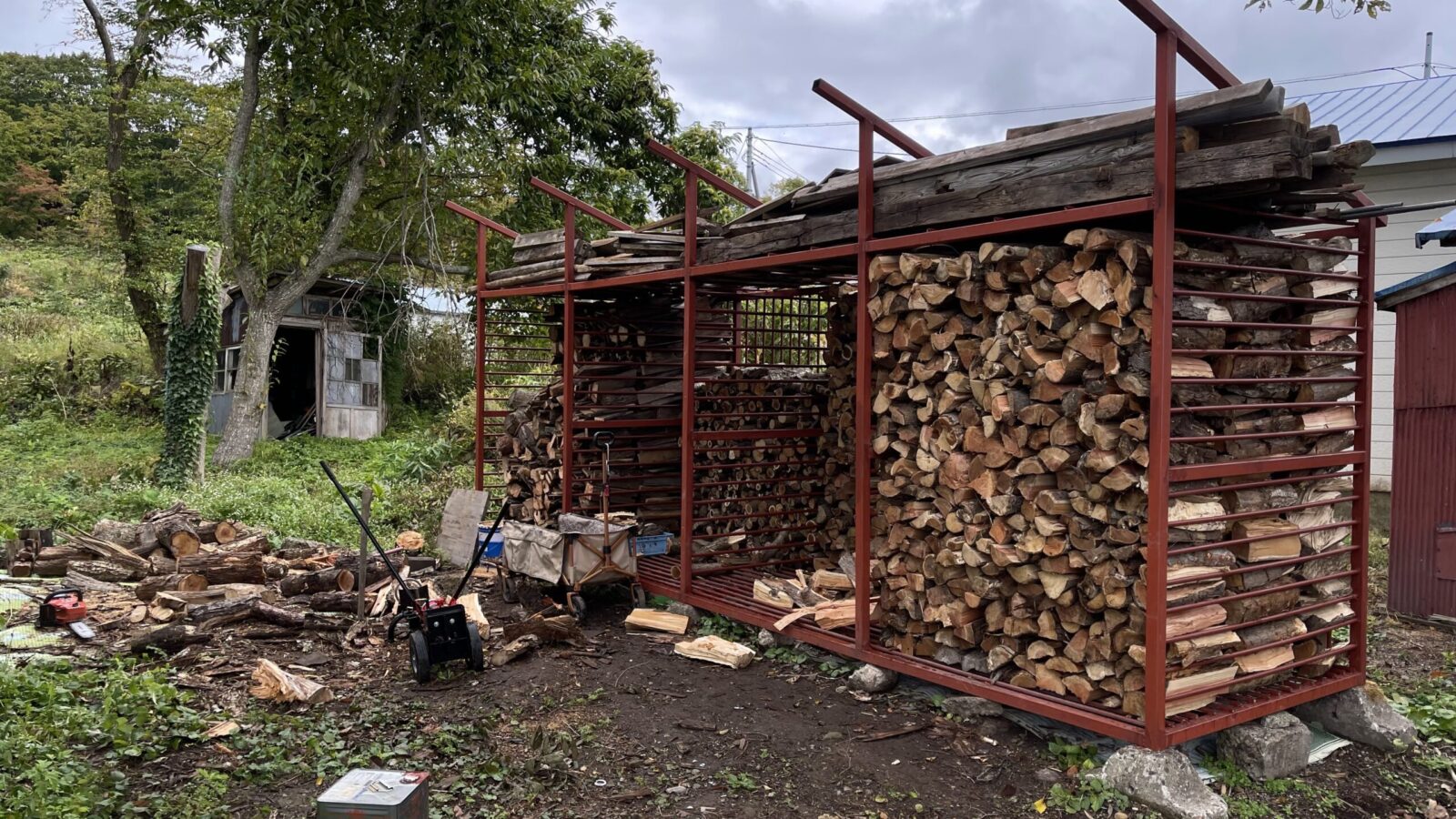つまり、この薪棚は北海道の厳しい冬を余裕で乗り越え、さらに次の冬の分まで蓄えておけるほどの、まさに「要塞」なのです。
