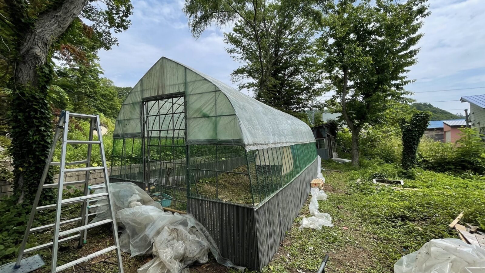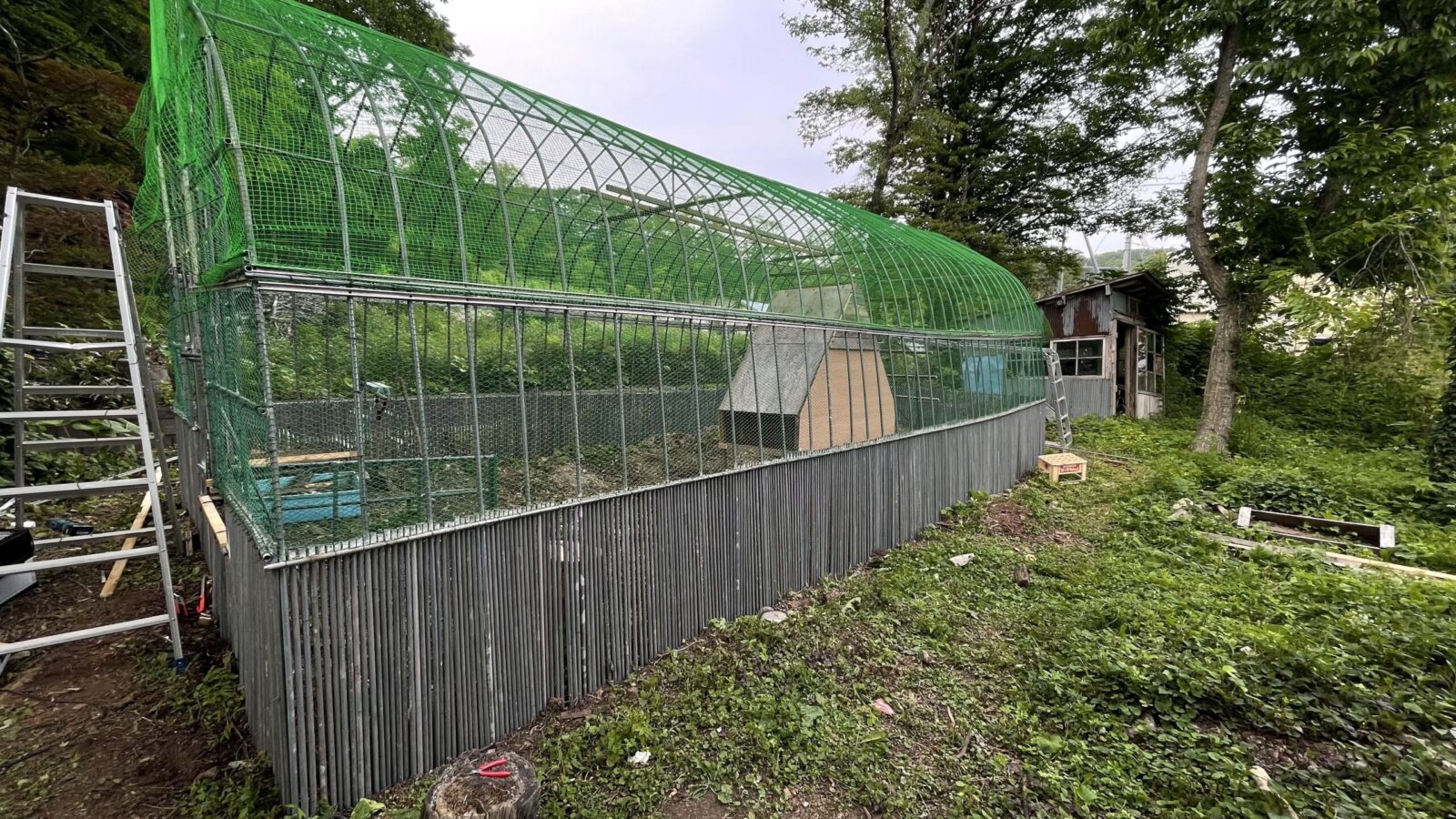 建物の形は、知人から大量に譲り受けたビニールハウス用のパイプを活かせる「ビニールハウス型」に決めました。