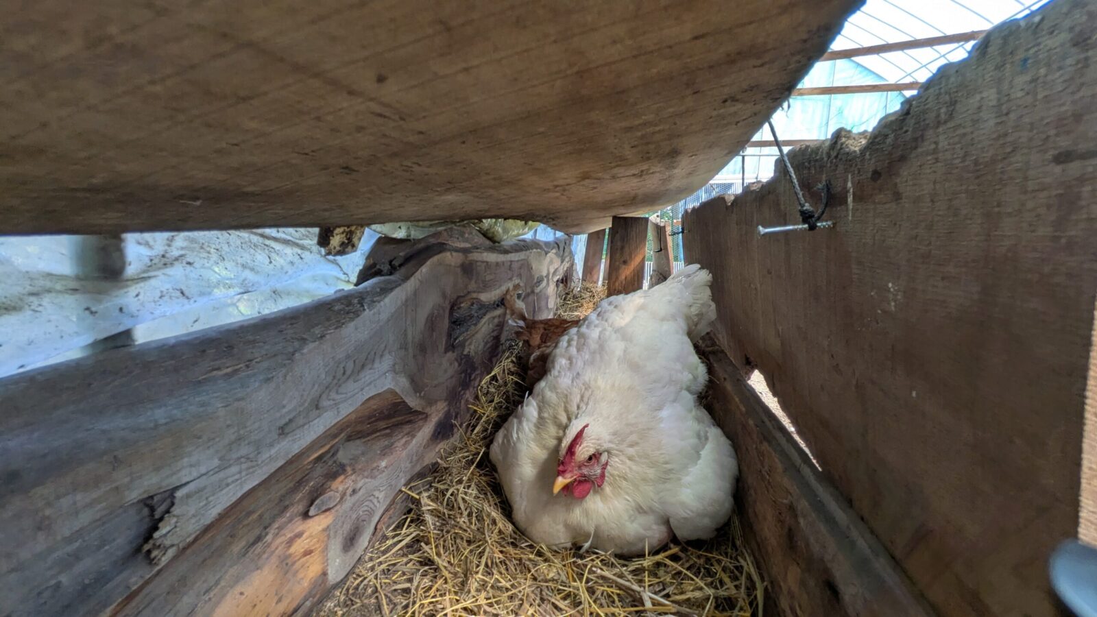 鶏は暗くて狭い場所を好みます。適度な囲いを作ることで、安心して毎日卵を産んでくれる場所を提供しています。